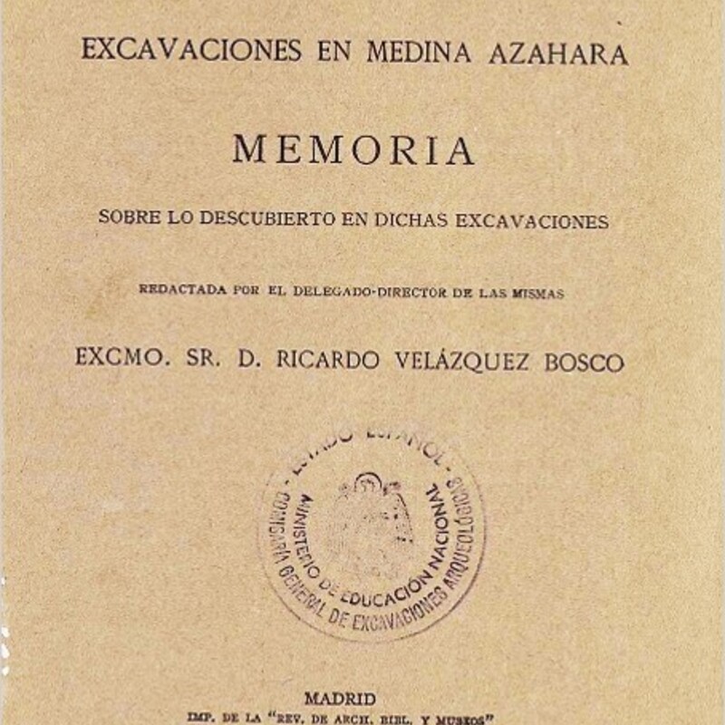 Excavaciones en Medina Azahara : memoria sobre lo descubierto en dichas excavaciones