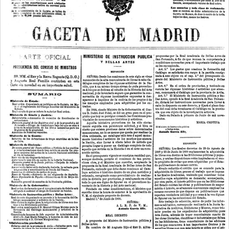 Real Decreto de 1 de junio de 1900 sobre la formación del Catálogo monumental y artístico de la Nación